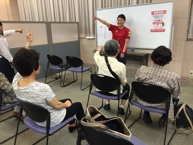 「健康×おしゃべり」と題して開かれた高齢者向けのイベント(6月15日、南福岡自動車学校)で、健康体操、認知症予防、交通安全などについて、ゲームを通じて楽しく学んでいただきました。